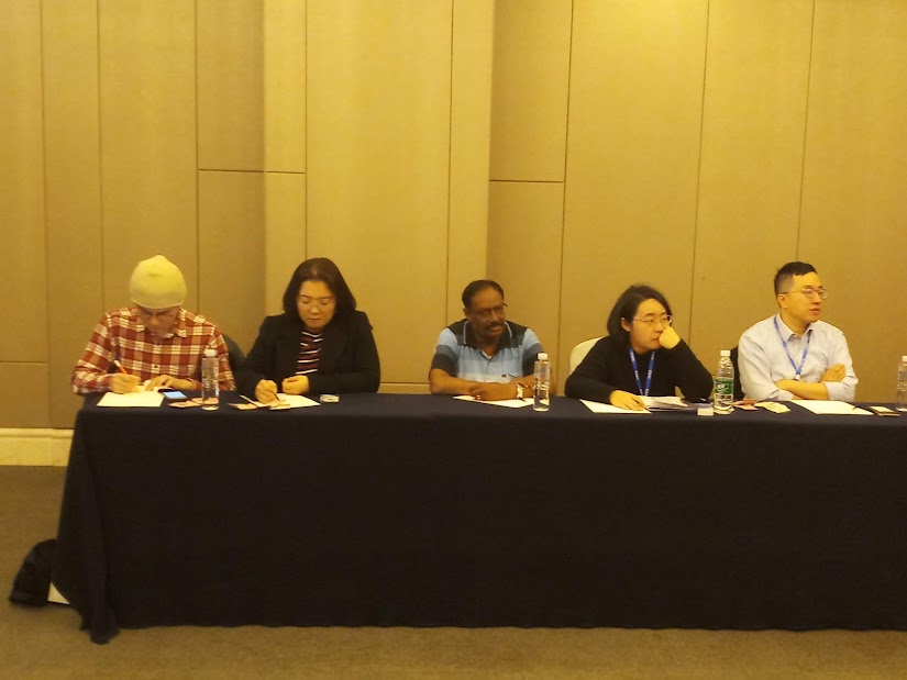 In a parallel session, the panelists Chiara Cigareni, Dr. Srinarahari, Eero Suoranta, He Xiang, Nikolai Karayev, Park San Joon, Sun Wei, and Wang Meizi, discussed on the issues concerned about translating SF in conducting workshop. Dr.Srinarahari initially dealt on the topic covering the concept, forms, methods, L1 to L2 and vice versa, the scenario in India, the difficulties faced in different levels in carrying out the workshops and in the production of the workshop products, the difficulty in bringing together the works in twenty two Indian vernacular SF works into English, and the efforts of the translators in translating English language SF to their respective vernacular and regional language formats and the abundant scope of publication of such works in Indian languages. The major hurdle in translating SF works, as he pointed out, is in localizing the cultural contexts.